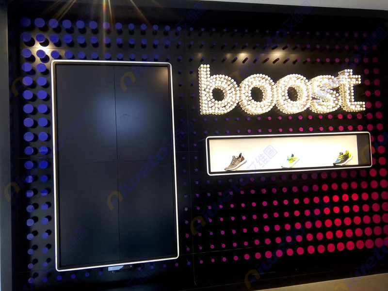 此次項(xiàng)目是為上海阿迪達(dá)斯Runbase 西岸基地大廳內(nèi)安裝大屏幕液晶拼接系統(tǒng),為其打造了一整套視頻傳媒廣告系統(tǒng)。